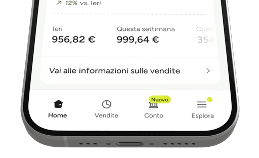 Scopri facilmente le tendenze: una nuova sezione vendite ti mostra come va il tuo business oggi rispetto a ieri, insieme al totale delle vendite della settimana, del mese e dell’anno. Hai anche una vista semplificata del totale dei pagamenti della tua azienda e resti aggiornato sulle ultime novità.